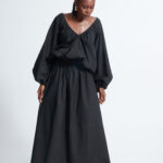Full maxi skirt with a fit and flare silhouette. Side seam zip for fastening.